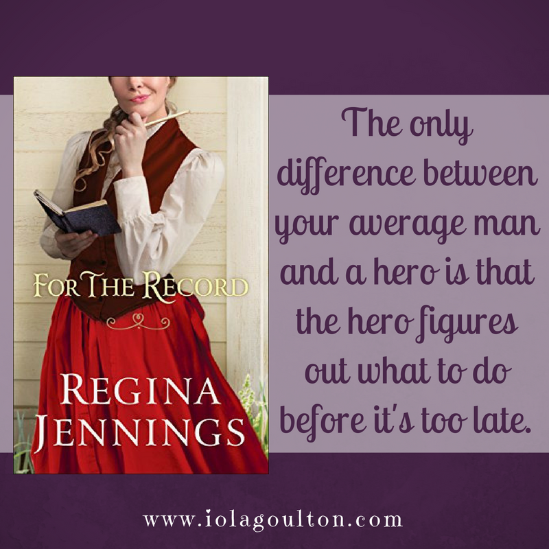 Thanks to Bethany House and NetGalley for providing a free ebook for review. Click here to find out more about Regina Jennings at her website, and can read the introduction to On the Record below: